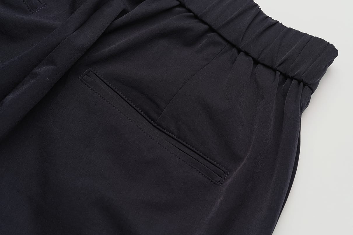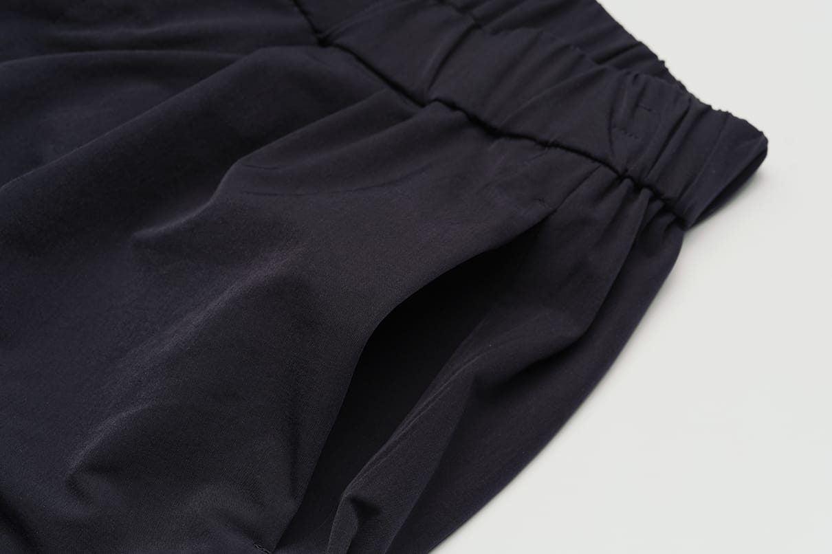 控えめな光沢が上質な雰囲気を醸し出し、ポリウレタン糸を使わずにストレッチ性を実現した特別な素材です。
