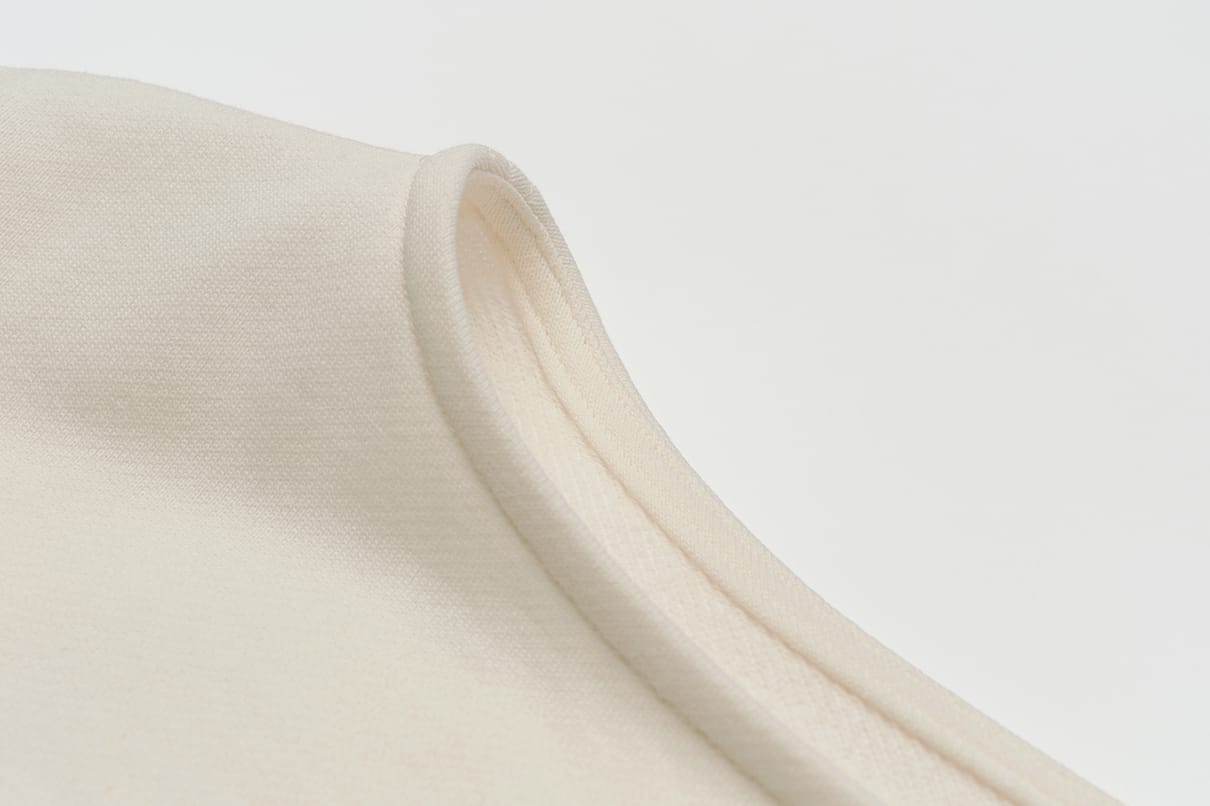 和紙糸を表地に、綿糸の裏毛を裏地に用いたハイブリッド素材で編まれた高級部屋着は、ご家庭で洗濯可能なうえ速乾性に優れ、サラッとした手触りと柔らかな肌触りを両立し、ストレッチ性による快適な着心地と、ゆったりとしたユニセックス対応のシルエット、そして上品でシンプルなデザインが魅力です。