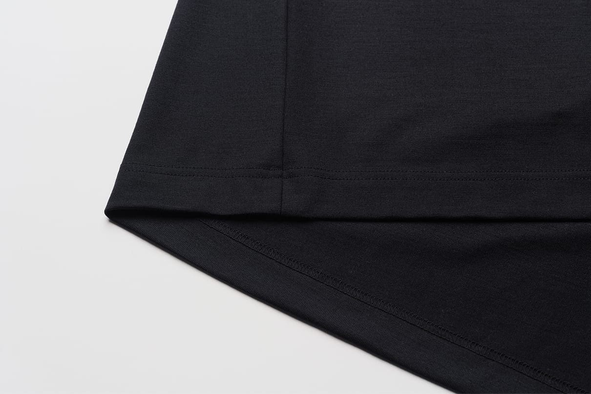 Its excellent moisture absorbency and desorbency makes it comfortable to wear even in summer, and its relatively thinness makes it a versatile material that is ideal for wearing alone in summer and under coats and down jackets in winter.