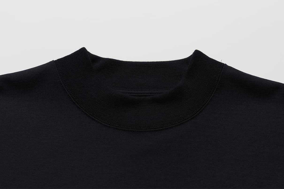 さらに、衿部分にはウール100%のリブ編みを採用しており、首への当たりも柔らかく、ウール本来の抗菌・消臭性能も備えています。